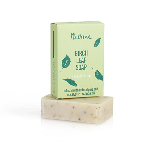 Handmade from natural ingredients using the cold process method, leaves picked from Estonian birches. Combined with eucalyptus oil they help to restore the skin's moisture balance. The scent of the soap creates a nostalgic mood of a traditional Estonian Sauna.