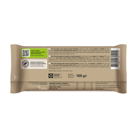 Kalev caramel-flavored white chocolate with salted almonds 100g