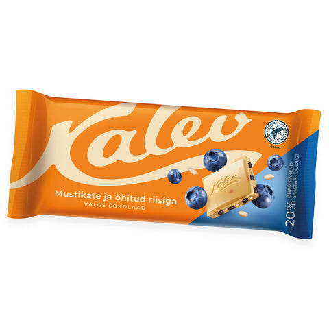 - Sweet and creamy white chocolate is well balanced by rice crisps and sour pieces of blueberry